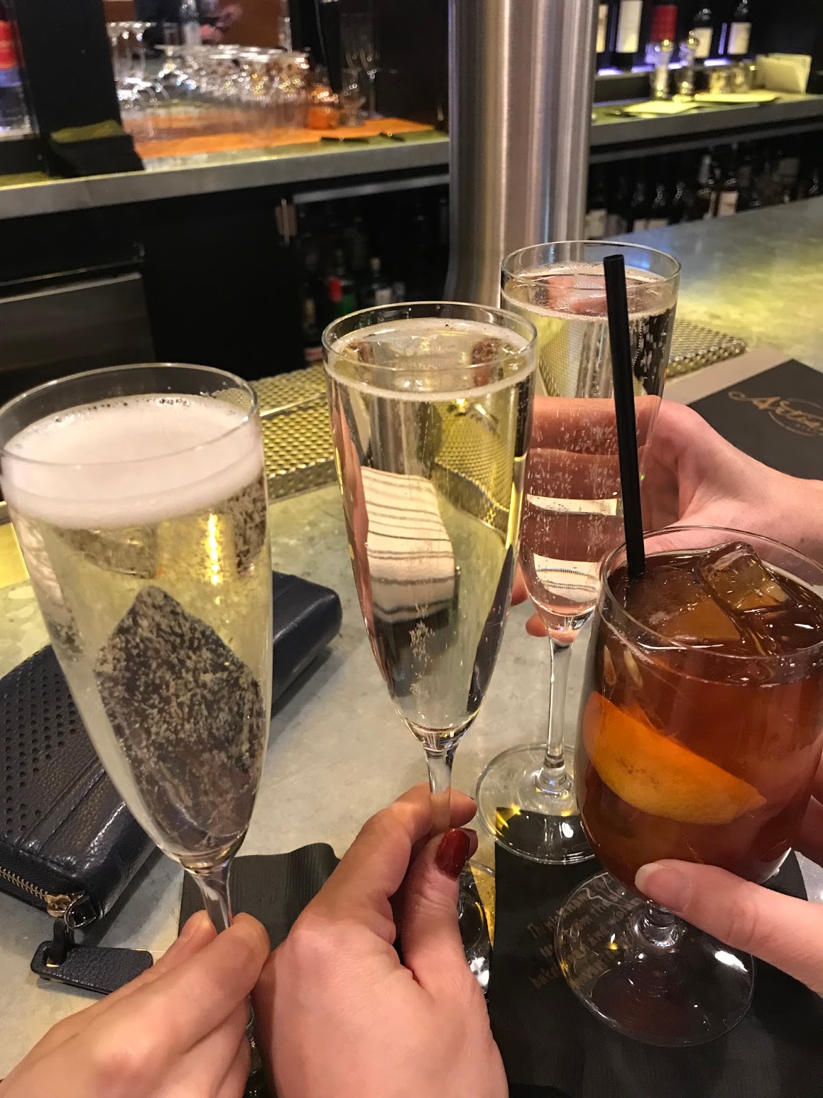 After dinner we headed back to the Parker House to enjoy bubbles at The Last Hurrah, my absolutely favorite hotel bar in the city. The Last Hurrah is a throwback to quaint, old-fashioned Boston and I love it. Nothing fancy, nothing modern. Round tables, with old-school arm chairs and couches, and lots of bubbles!
