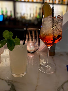 We had pretty much agreed that we weren't going to go out anymore but I couldn't resist dinner at Bar Enza to celebrate vacation. We grabbed an early reservation so it wouldn't be too crowded. This was our second visit in a month and I have to say, this place is great. The food and drinks are really well prepared and the service is great. We got into a rather long conversation about the current state of affairs with the manager. Restaurants are really hurting. Many will not survive. I hope this one does.